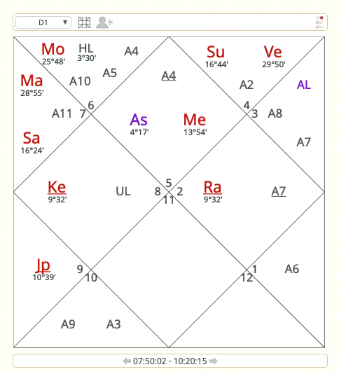 And all this just from looking at the Lagna, Lagna lord, Moon and 4th house!